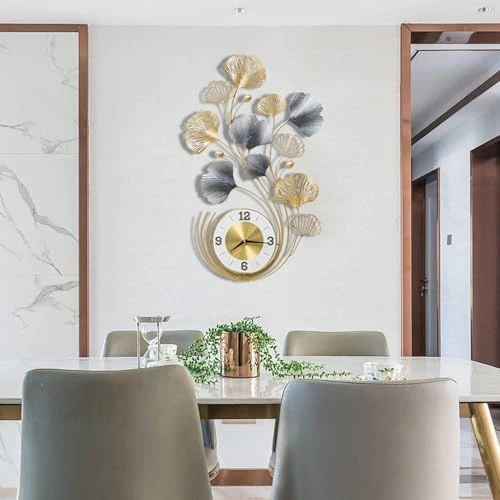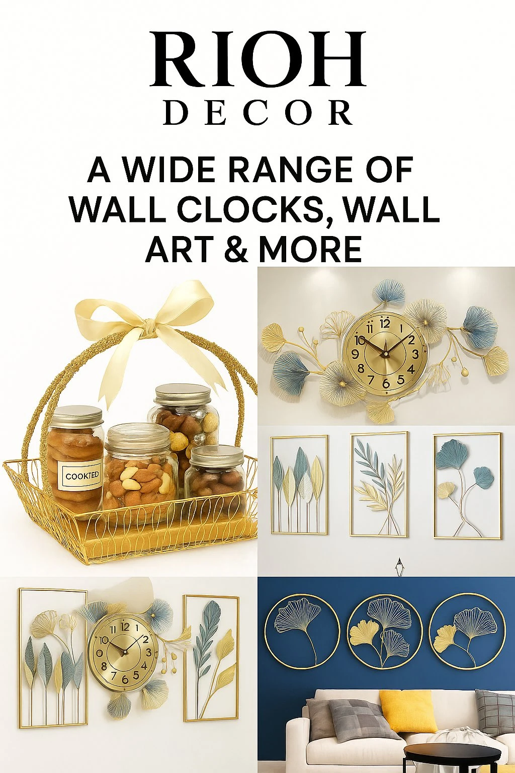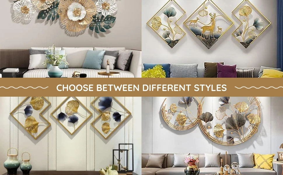 RIOH Metal Wall Art – Golden Deer & Ginkgo Leaf Diamond Frames (Set of 3) | Modern Luxury Wall Hanging for Living Room & Bedroom
