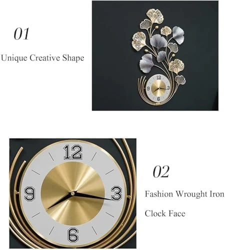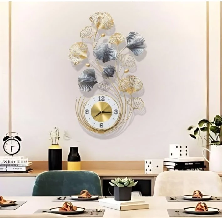This unique wall clock blends modern artistry with timeless elegance, featuring beautifully crafted gold and blue ginkgo leaves with a premium metallic finish. The golden dial adds sophistication, while the silent movement mechanism ensures a noise-free environment.