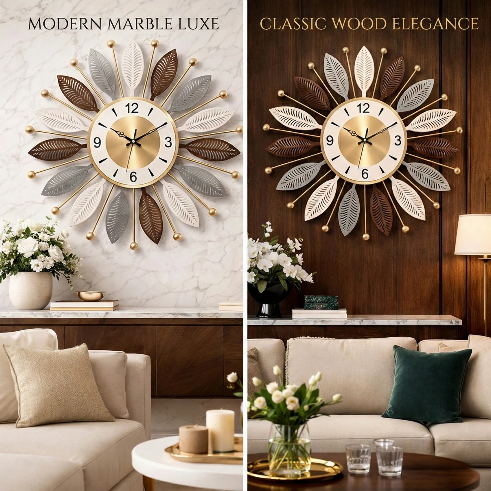 Enhance your home with this premium metal wall clock from Rioh Decor. Designed with a modern luxury finish, this wall clock adds elegance and style to any living room, bedroom, office or hallway.